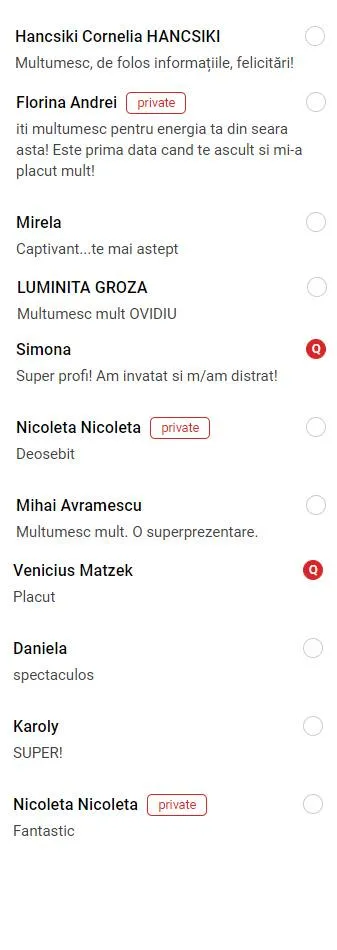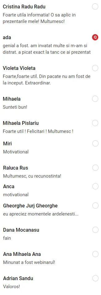Nu, din contră, ești exact unde trebuie. Comunitatea a fost creată special pentru cei care vor să înceapă să vorbească în public fără teamă, care nu mai doresc să citească din foi și care își doresc să-și exprime ideile clar și convingător în orice context – fie că este vorba de o întâlnire, o vânzare, un podcast sau un eveniment. Experiența nu este o condiție de intrare, ci este rezultatul pe care îl vei obține prin participare activă.