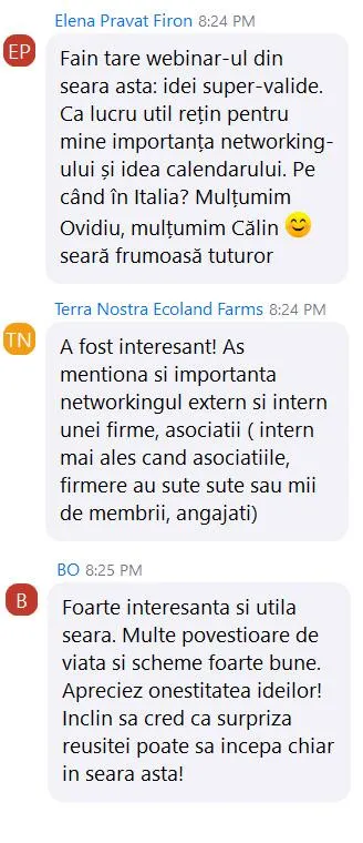 Inspirație și învățare din experiența celorlalți membri