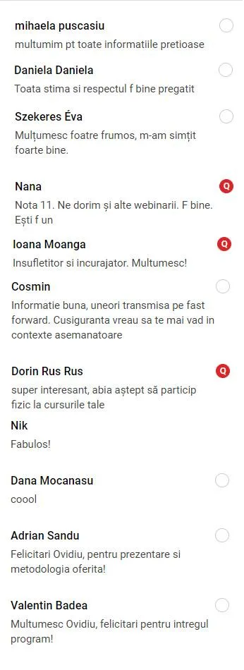 - O sesiune de Q&A pe lună primești răspunsuri care te scot din confuzie și te fac să ieși în față cu claritate.