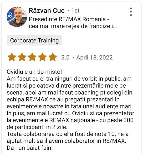 În ultimii 12 ani am colaborat cu peste 75 de companii și prin ședințe de consultanță, traininguri intensive și cursuri online.