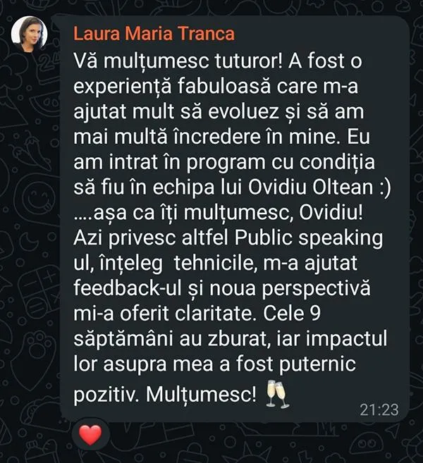 Iar la începutul carierei mele, mi-aș fi dorit să am un loc sigur unde pot greși, primi feedback sincer și crește real și așa a apărut Top Speakers Club – dintr-o nevoie personală transformată în misiune.